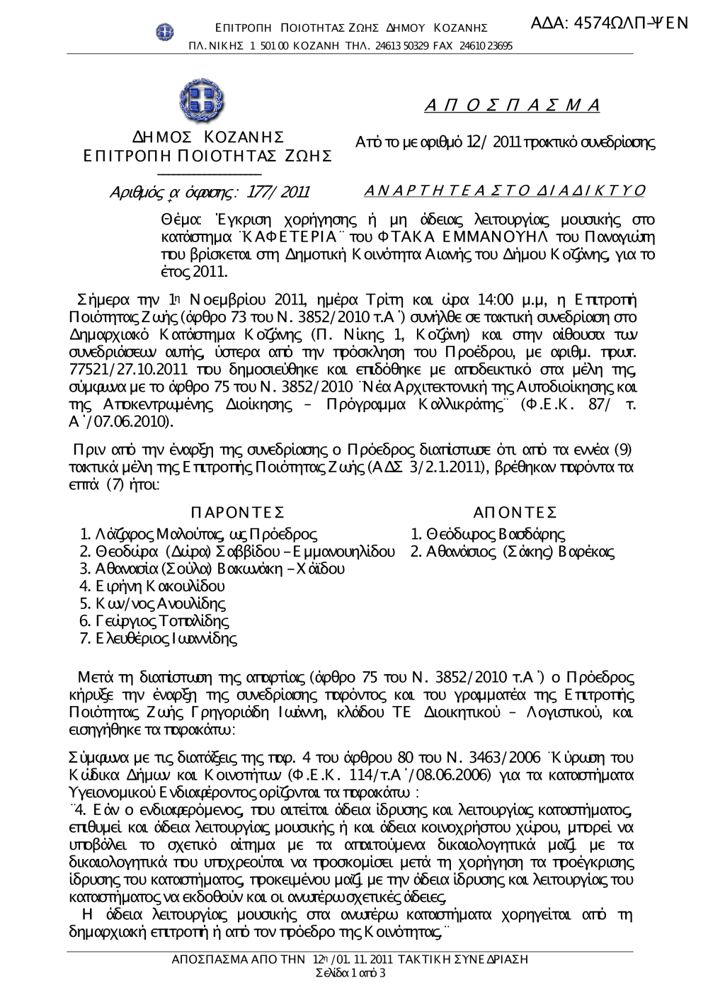 177-2011 Μη χορήγηση άδειας μουσικής στον Φτάκα Εμμανουήλ του Παναγιώτη.pdf
