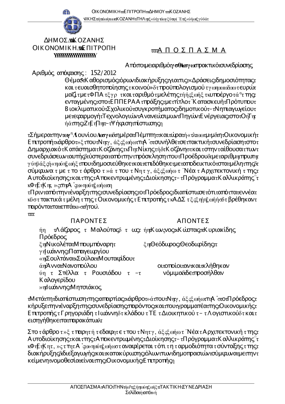 Αποφάσεις Οικονομικής Επιτροπής