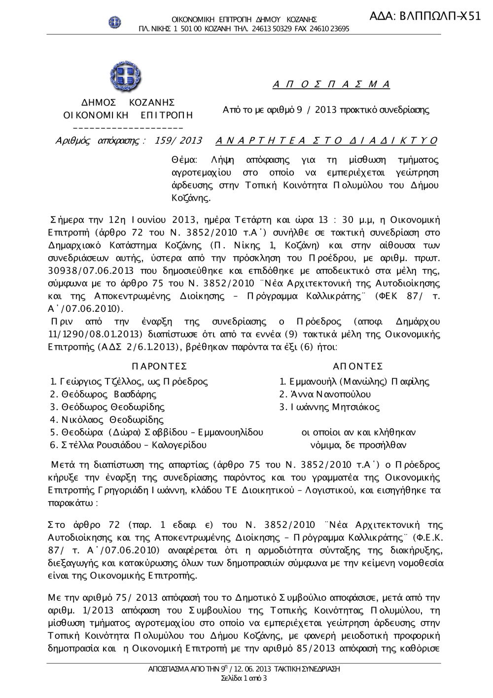 159-2013 Παραπομπή της μίσθωσης με γεώτρηση άρδευσης στην ΤΚ Πολυμύλου.pdf
