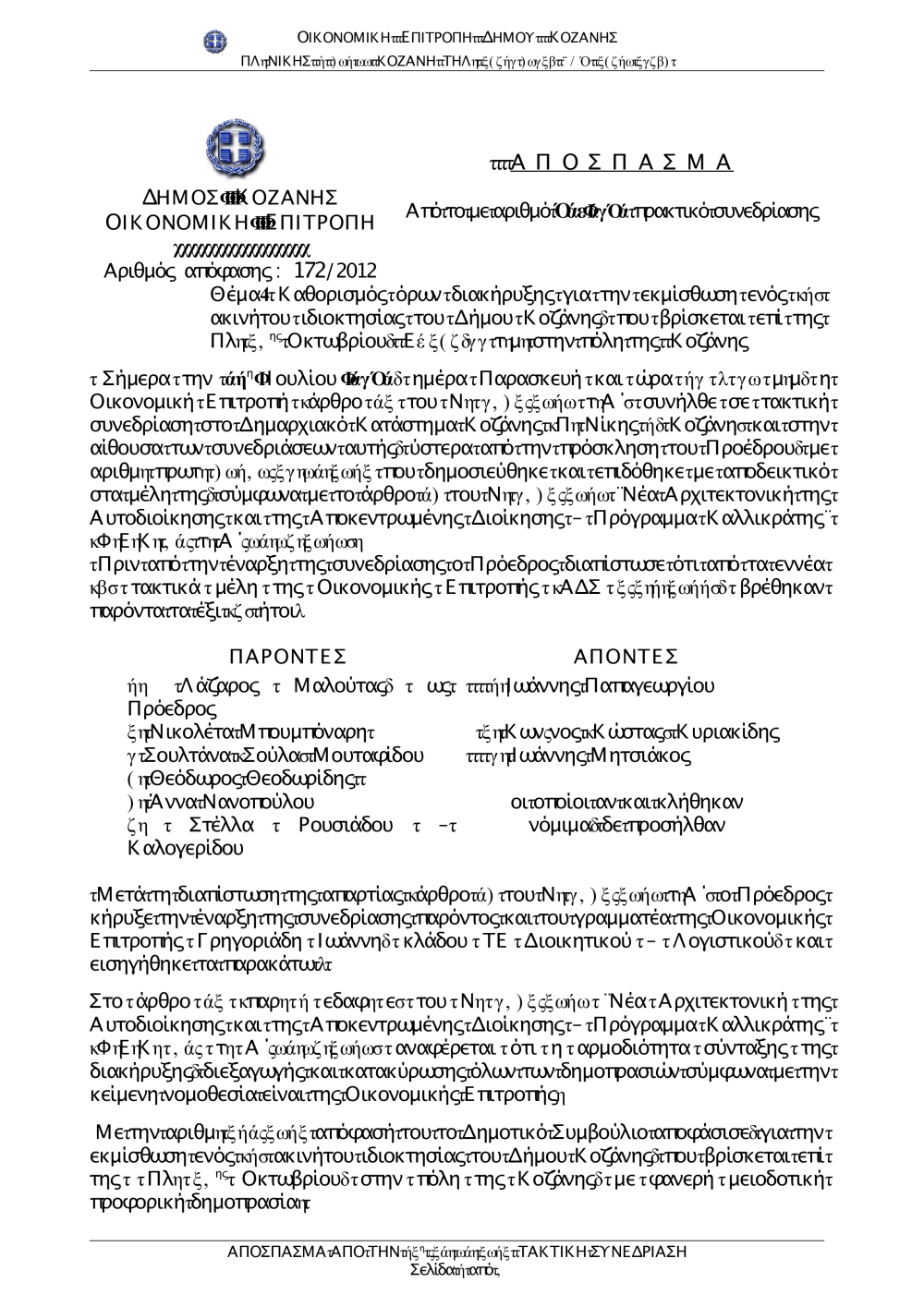 Συνεδριάσεις Οικονομικής Επιτροπής