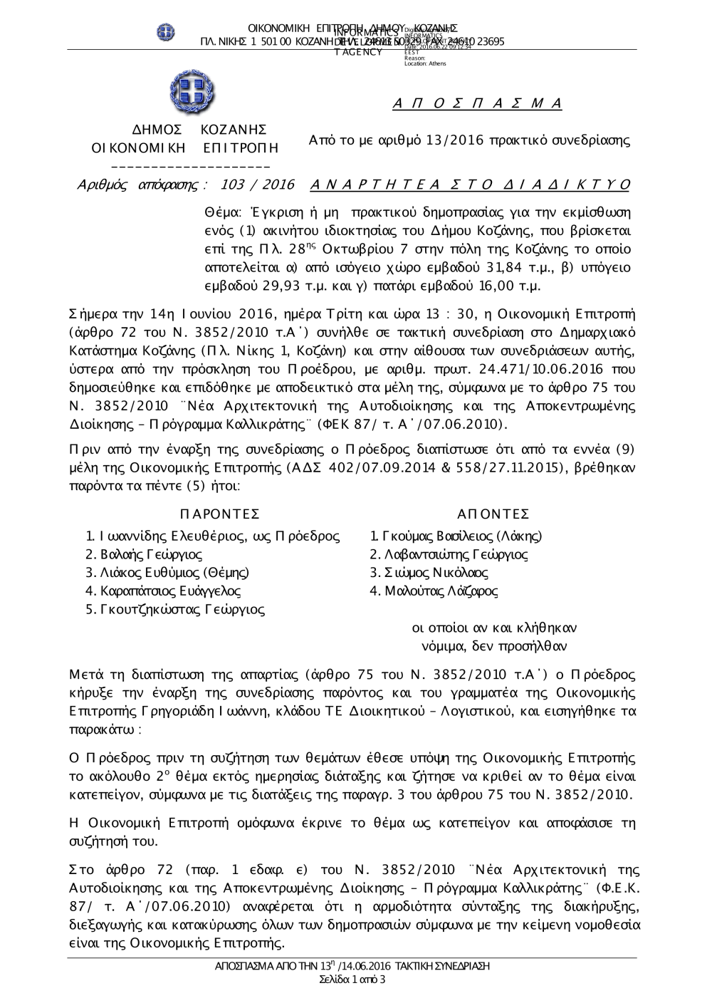 103-2016 Κατακύρωση για εκμίσθωση καταστήματος επι της Πλ. 28 Οκτωβρίου 7.pdf