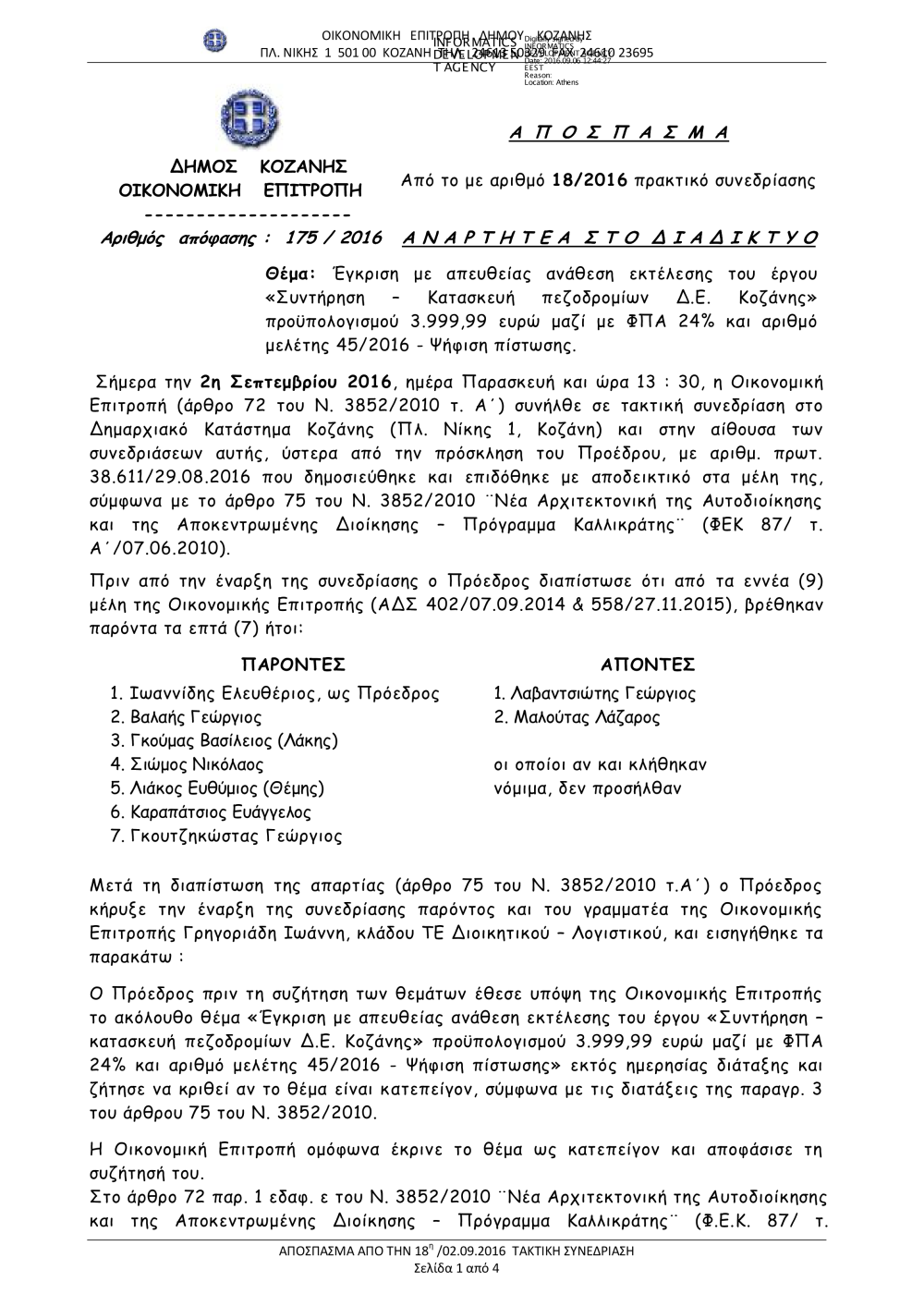 175-2016 Απευθείας ανάθεση συντήρηση επισκευή πεζοδρομίων Δ.Ε. Κοζάνης.pdf