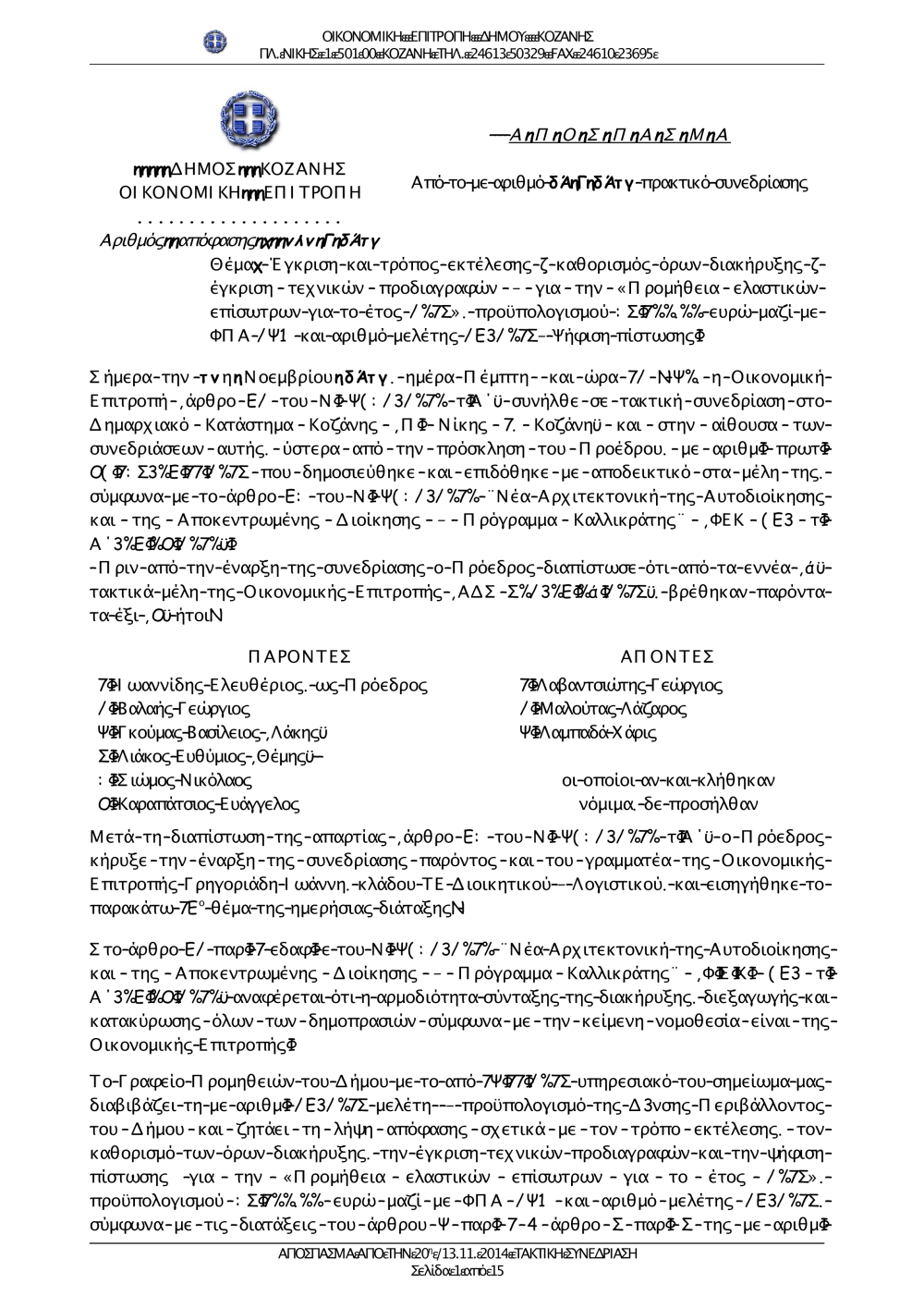 Αποφάσεις Οικονομικής Επιτροπής