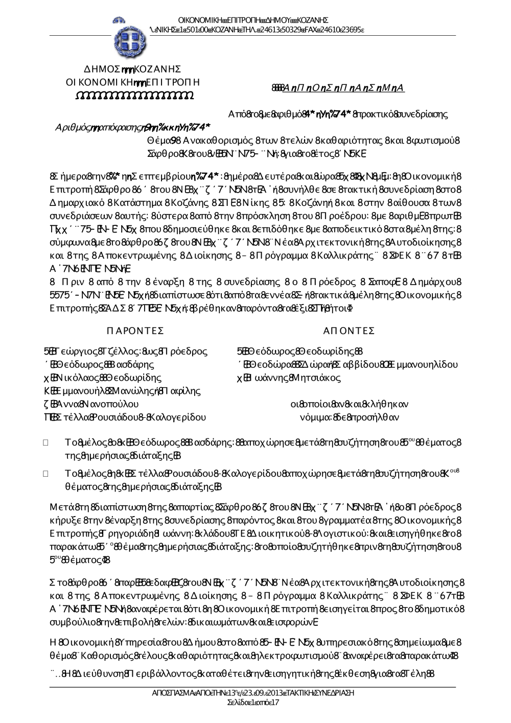 Αποφάσεις Οικονομικής Επιτροπής
