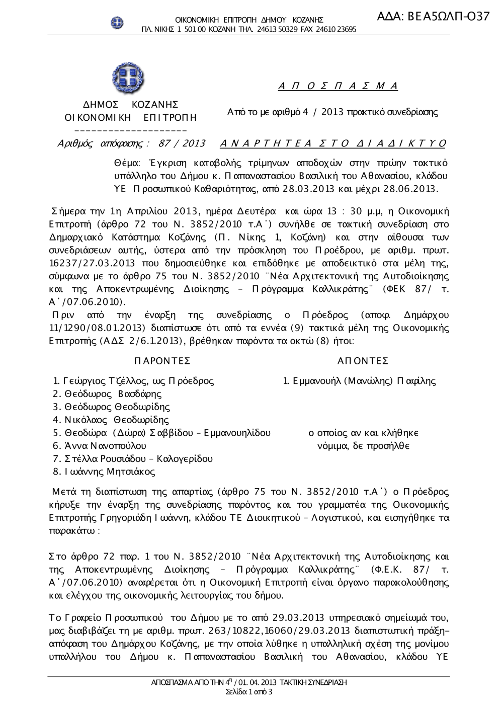 087-2013 Έγκριση χορήγησης τρίμηνων αποδοχών στην Παπαναστασίου Βασιλική του Αθανασίου.pdf