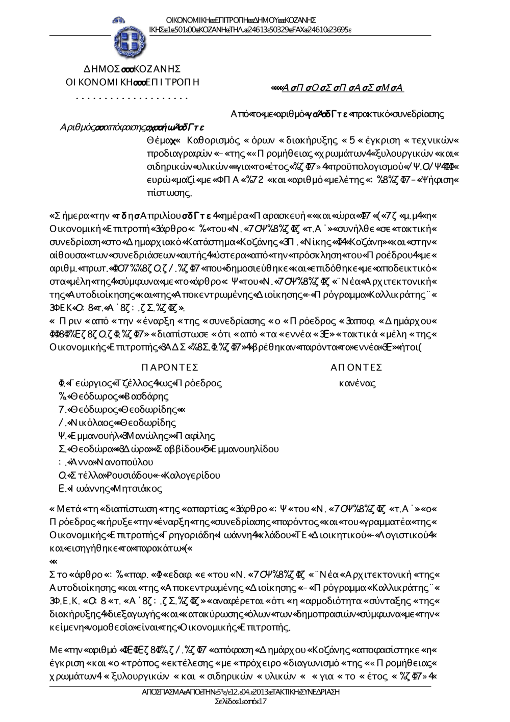 Αποφάσεις Οικονομικής Επιτροπής