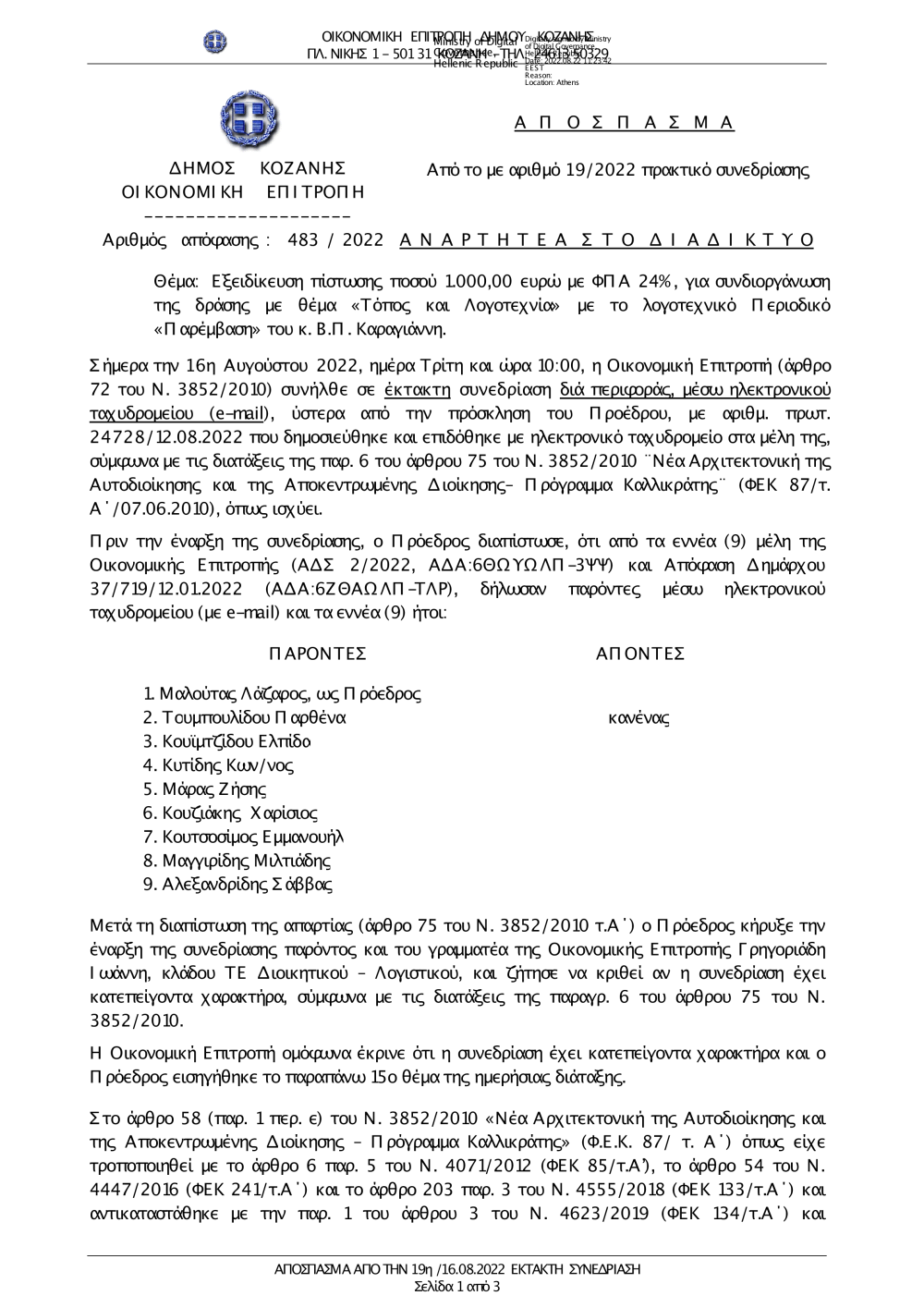 483-2022 Εξειδίκευση πίστωσης 1000 ευρώ για συνδιοργάνωση με τις Εκδόσεις Παρέμβαση.pdf