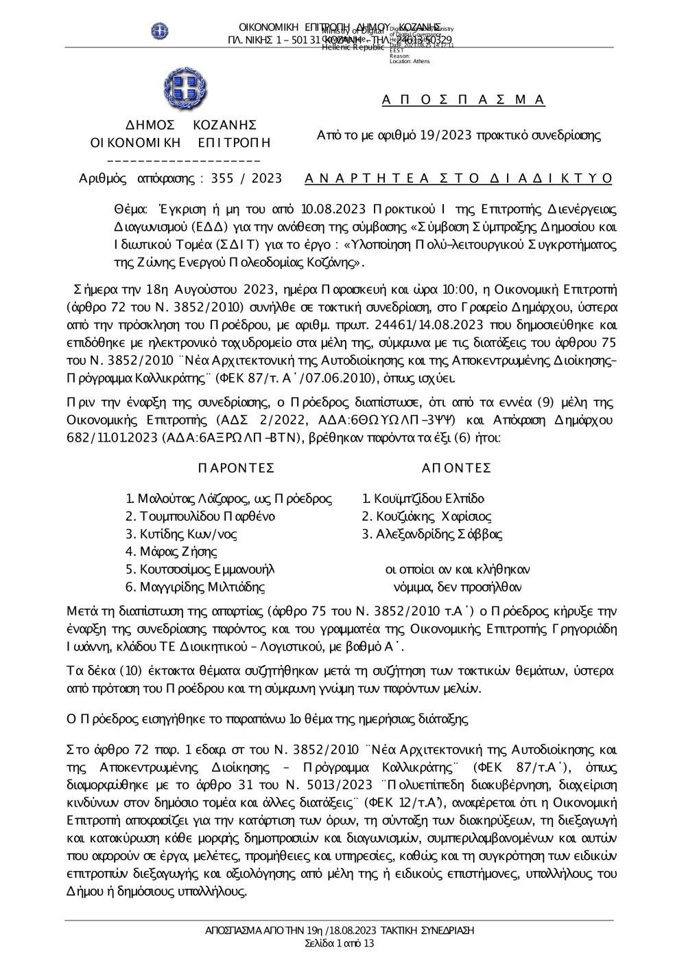 355-2023 Έγκριση Πρακτικού Ι για ΣΔΙΤ του έργου Υλοποίηση Πολύ-λειτουργικού Συγκροτήματος της ΖΕΠ ΣΔΙΤ.pdf