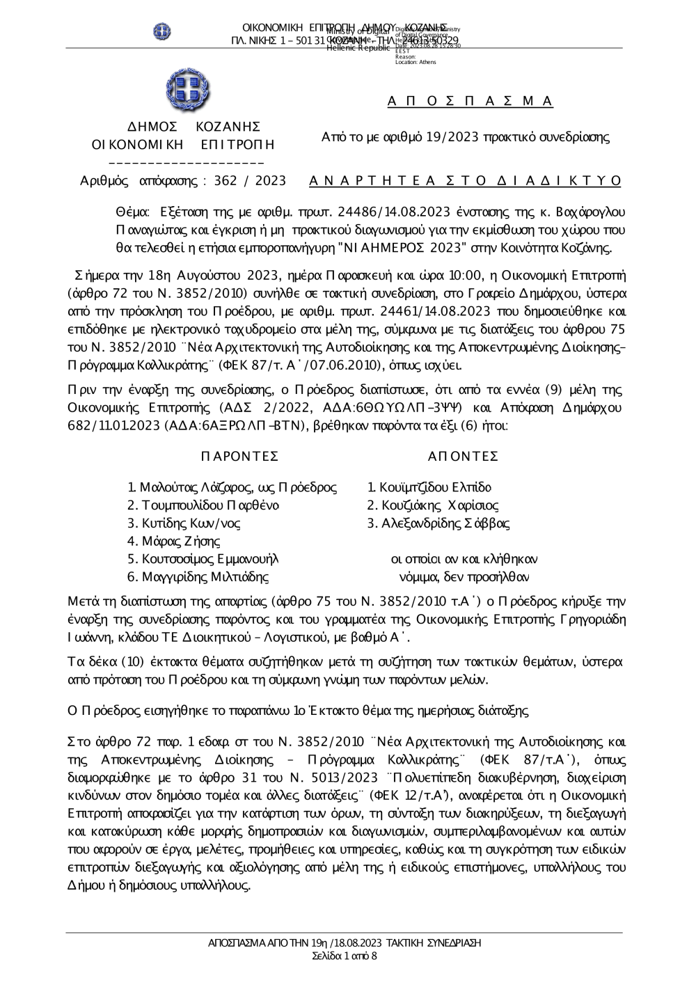 362-2023 Απόρριψη ένστασης Βαχάρογλου Παναγιώτας και κατακύρωση για ΛΟΥΝΑ ΠΑΡΚ Κοζάνης.pdf