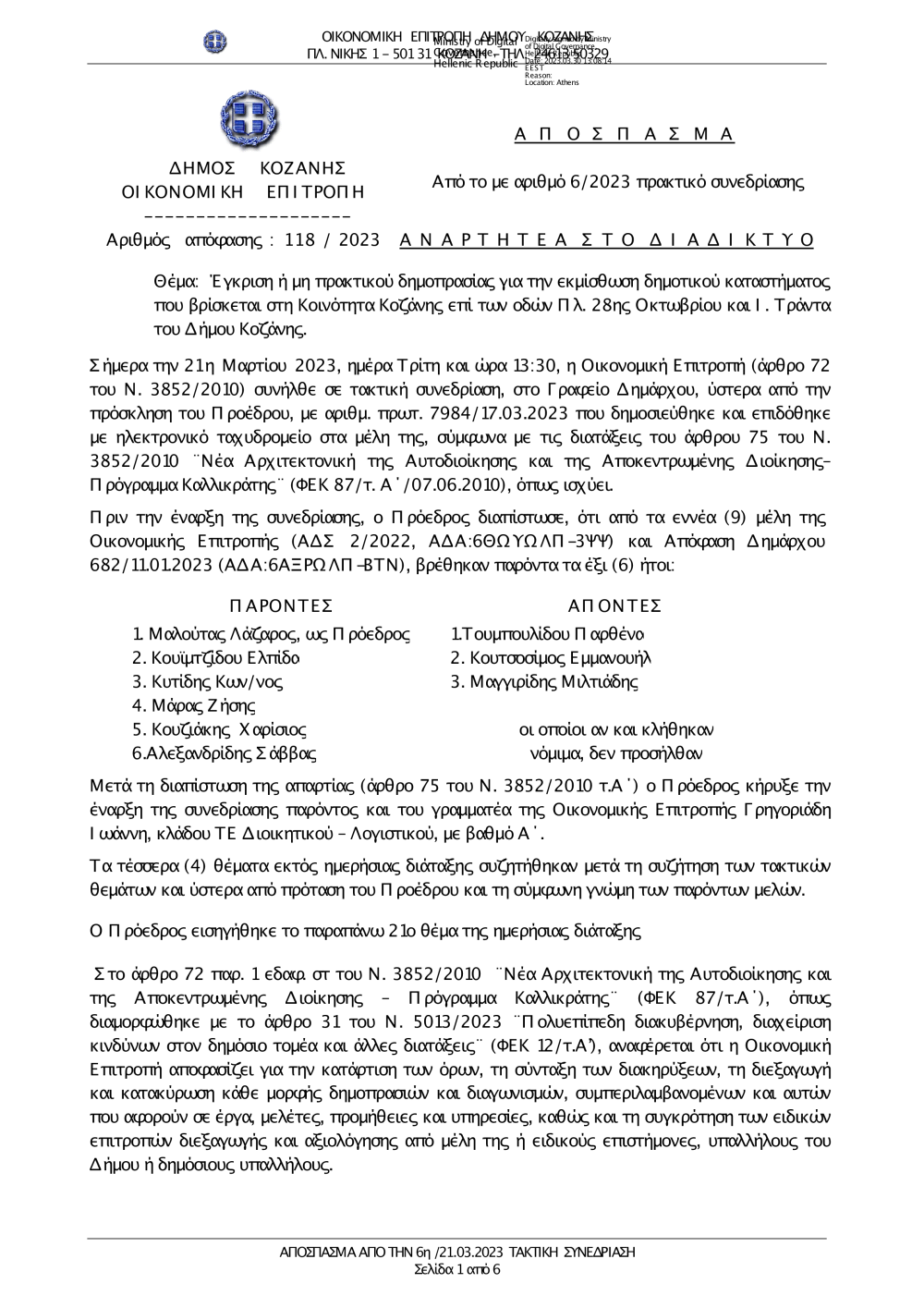 118-2023 Κατακύρωση για την εκμίσθωση καταστήματος 28ης Οκτωβρίου & Ι_Τράντα.pdf