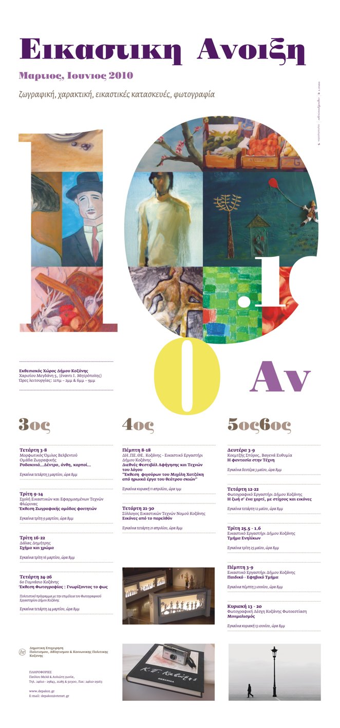 Ανοίγει την Τετάρτη 3 Μαρτίου 2010 η αυλαία της Εικαστικής Άνοιξης που διοργανώνεται από τη Δημοτική Επιχείρηση Πολιτισμού Κοζάνης.