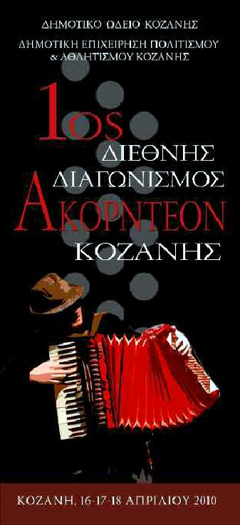 Αξίζει να σημειωθεί ότι για πρώτη φορά διοργανώνεται διαγωνισμός ακορντεόν τέτοιας εμβέλειας στη χώρα μας, στο πλαίσιο των πολιτιστικών δραστηριοτήτων του Δημοτικού Ωδείου Κοζάνης. Ο διαγωνισμός θα λάβει χώρα στην Αίθουσα Τέχνης του Δήμου Κοζάνης και καλούνται όλοι οι πολίτες να δουν από κοντά και να απολαύσουν την μοναδική αυτή μουσική εκδήλωση.