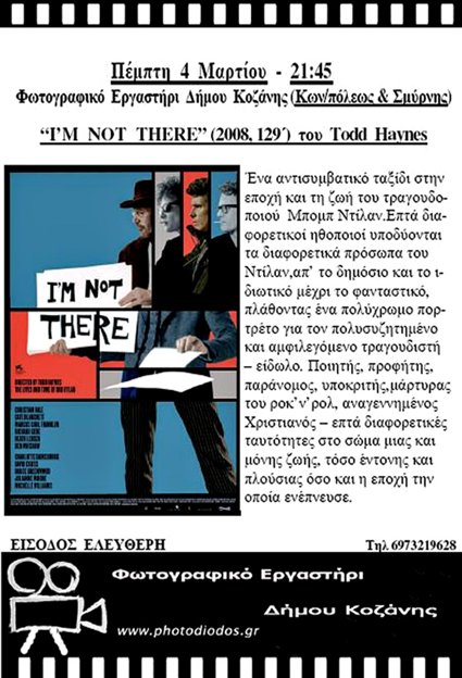 Το Φωτογραφικό Εργαστήρι του Δήμου Κοζάνης, διοργανώνει κινηματογραφική προβολή, την Πέμπτη 4 Μαρτίου 2010 και ώρα 21:45.