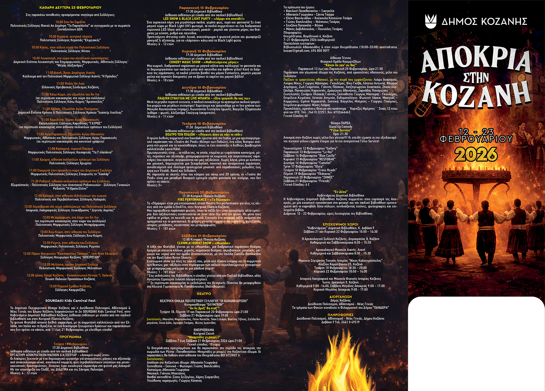 Κοζανίτικη Αποκριά 2026: Το αναλυτικό πρόγραμμα