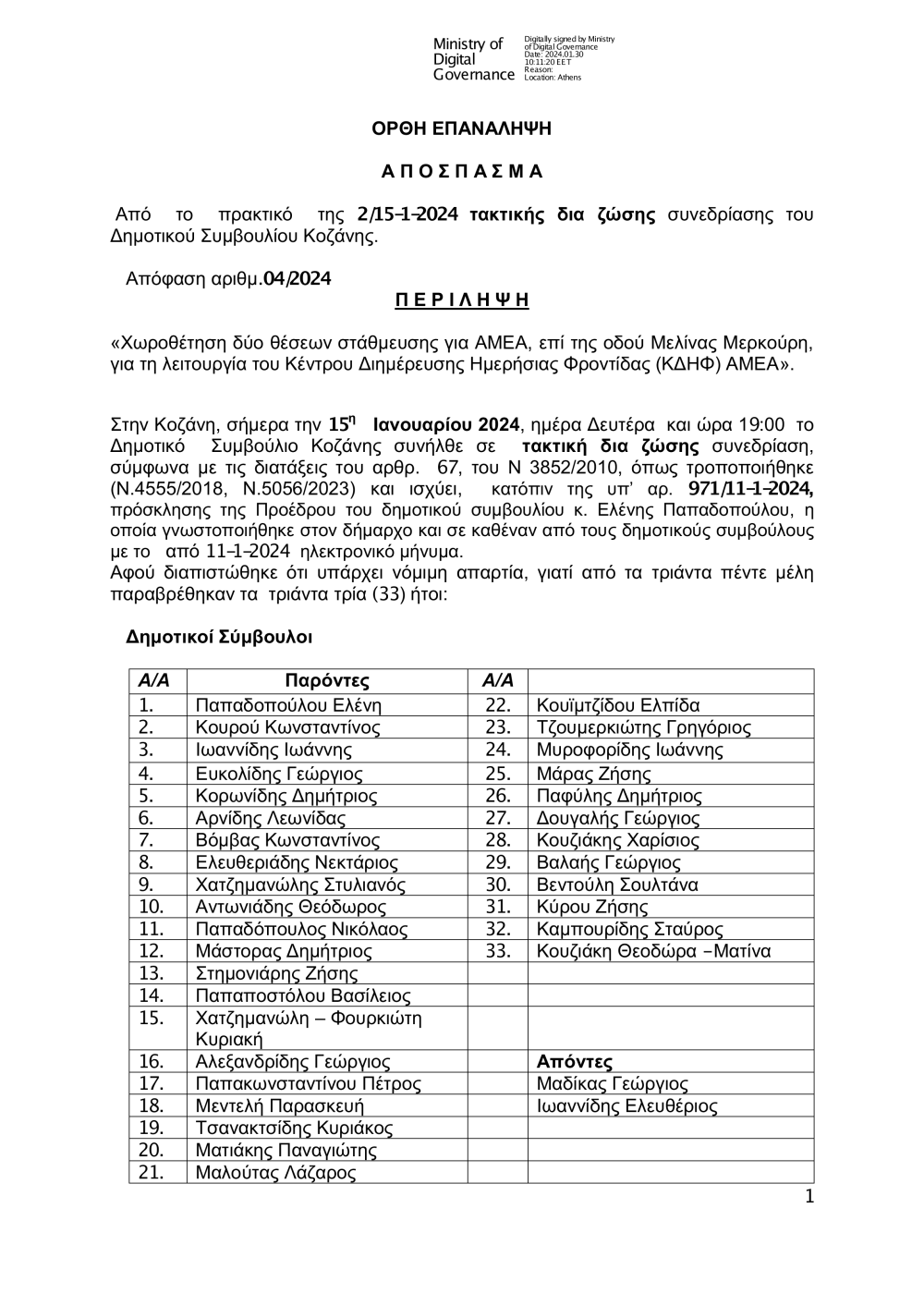 1-004-2024 ΟΡΘΗ ΕΠΑΝΑΛΗΨΗ Χωροθέτηση θέσεων στάθμευσης για ΑΜΕΑ στην οδό Μελίνας Μερκούρη για λειτουργία του ΚΔΗΦ.pdf