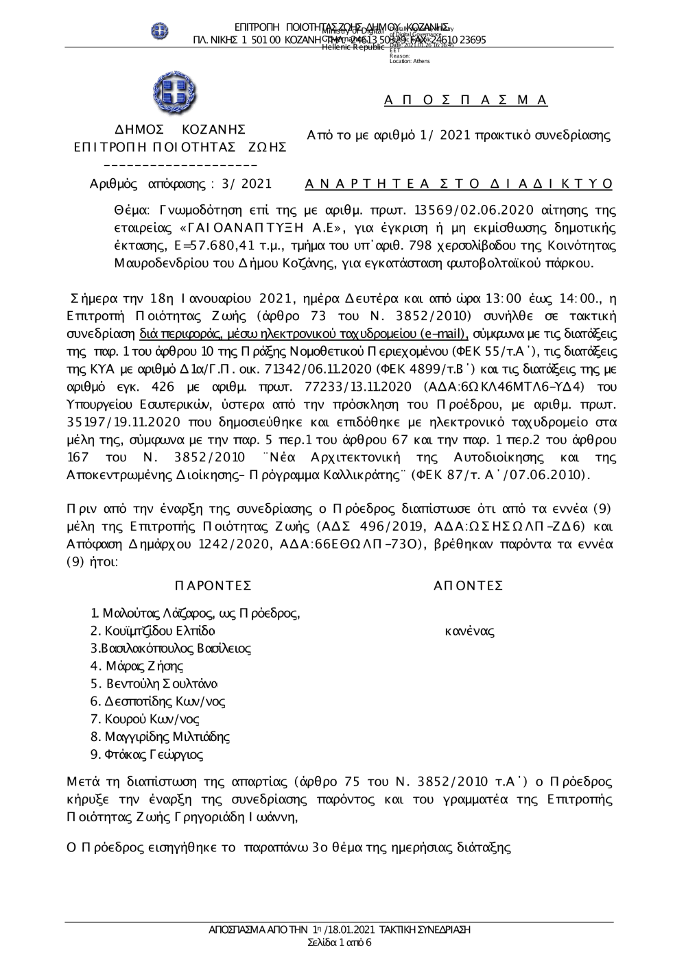 003-2021 Γνωμοδότηση για τη χρήση γής στην Κ. Μαυροδενδρίου στην ΓΑΙΟΑΝΑΠΤΥΞΗ Α.Ε. (φωτοβολταϊκά).pdf