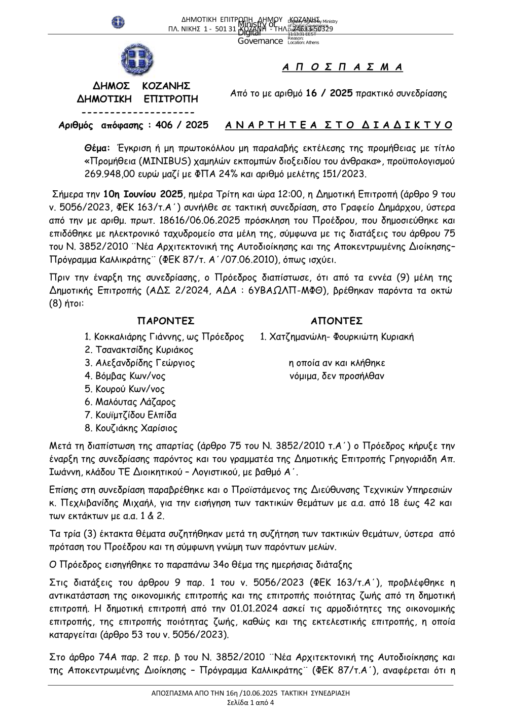 406-2025 Έγκριση Πρωτοκόλλου παραλαβής για Προμήθεια (MiniBus) χαμηλών εκπομπών διοξειδίου του άνθρακα.pdf (Version 1.0)