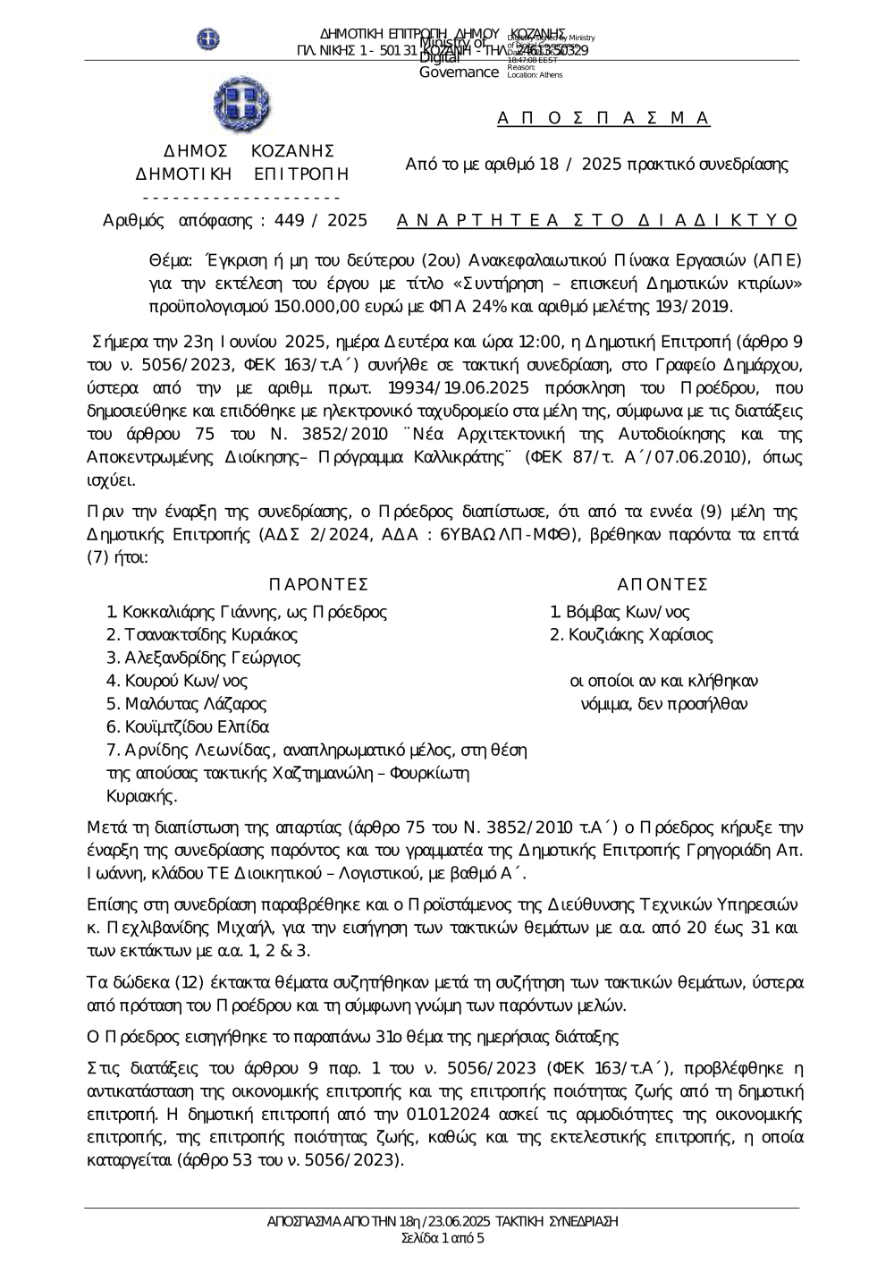 449-2025 Έγκριση 2ου ΑΠΕ για ια Συντήρηση - Επισκευή Δημοτικών Κτιρίων.pdf (Version 1.0)