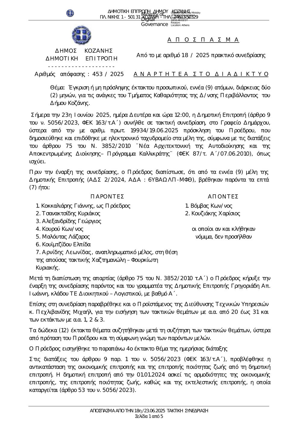 453-2025 Έγκριση για πρόσληψη έκτακτου προσωπικού (δίμηνα) για το 2025 (Δ.νση Περιβάλλοντος).pdf (Version 1.0)