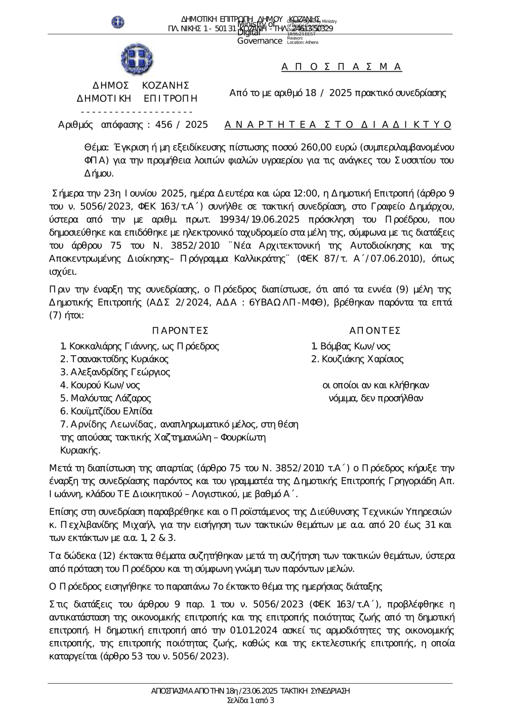 456-2025 Εξειδίκευση πίστωσης 260,00 € για Προμήθεια φιαλών υγραερίου για το Συσσίτιο.pdf (Version 1.0)