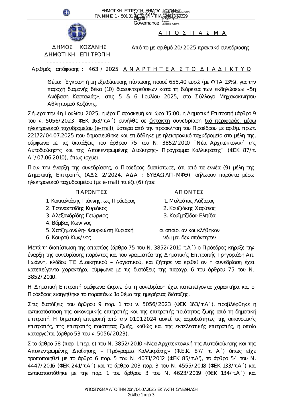 463-2025 Εξειδίκευση πίστωσης 655,40 ευρώ δαπάνες διανυκτερεύσεων ΣΜΑΚ.pdf (Version 1.0)