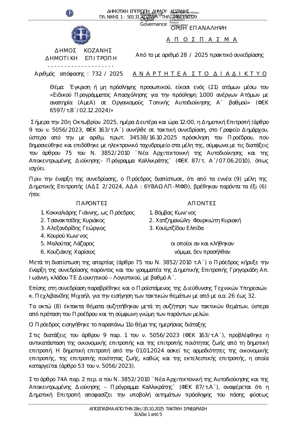 732-2025 Έγκριση για πρόσληψη έκτακτου προσωπικού ΑμεΑ 21 ατόμων.pdf (Version 1.0)