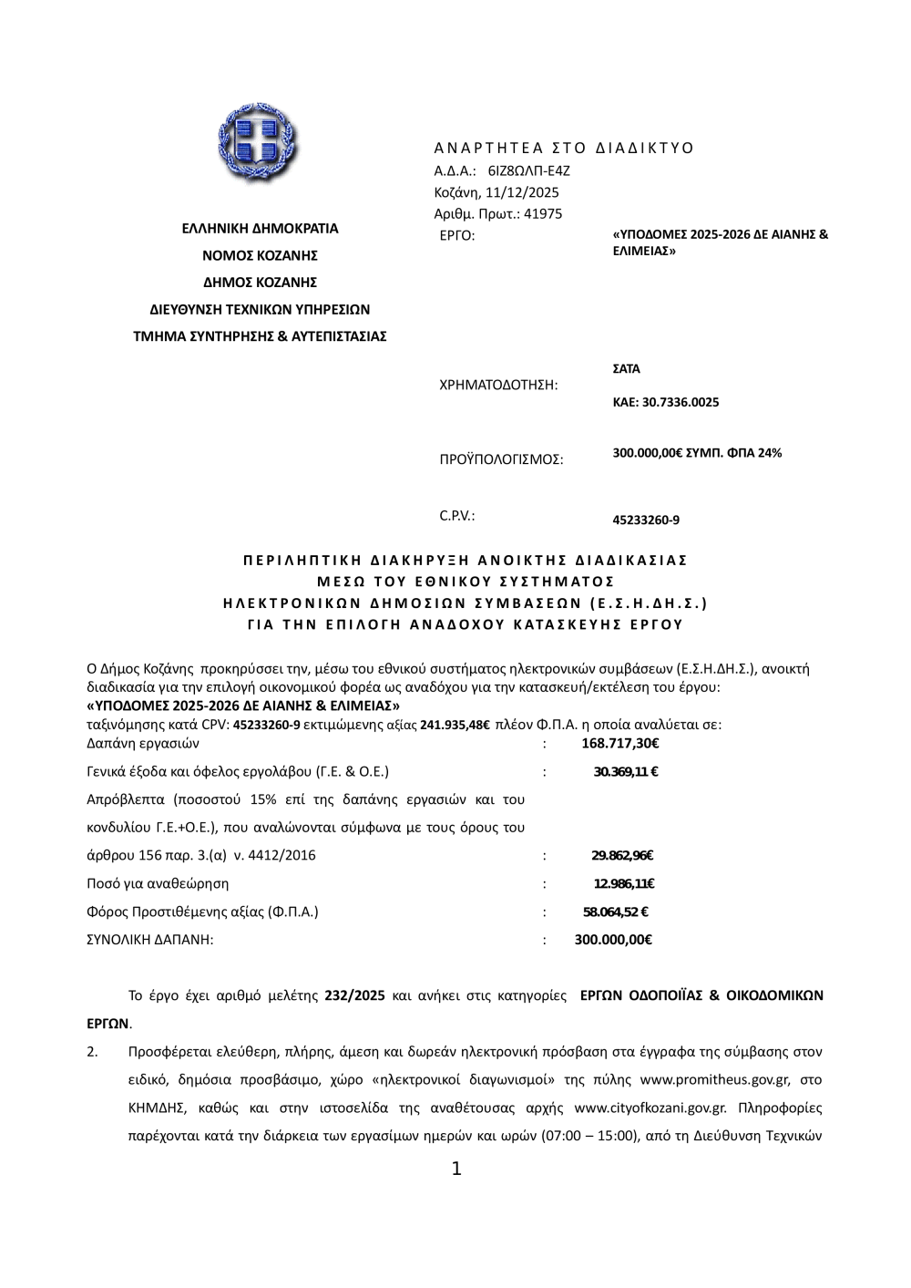 2025.12.11_41975 Περιληπτική Διακήρυξη Έργο ΥΠΟΔΟΜΕΣ 2025_2026 ΔΕ ΑΙΑΝΗΣ & ΕΛΙΜΕΙΑΣ.pdf (Version 1.0)