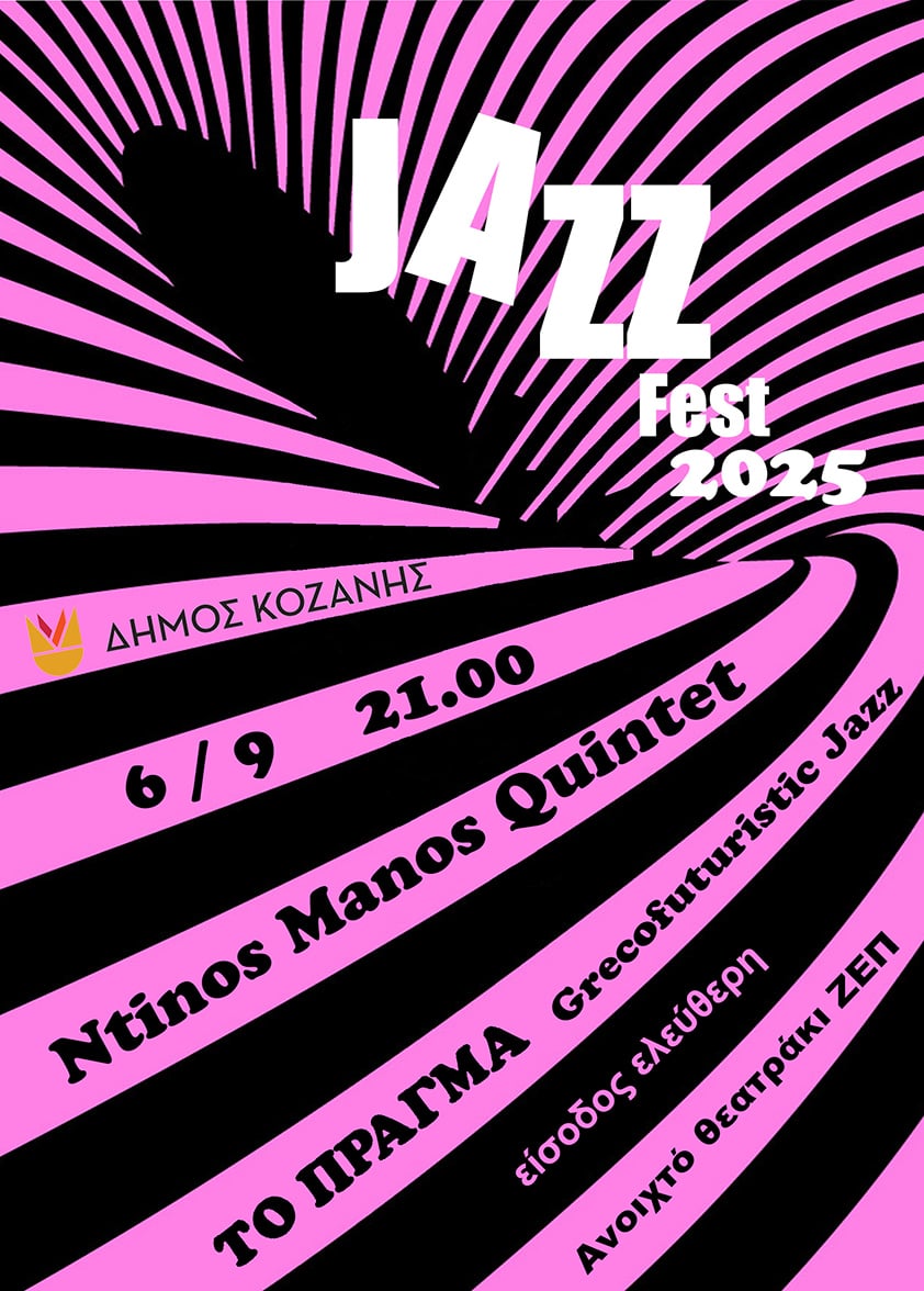 Μια όμορφη μουσική βραδιά τζαζ με τους Ntinos Manos Quintet και «Το Πράγμα» (Grecofuturistic Jazz), θα πραγματοποιηθεί στις 21:00 το βράδυ του Σαββάτου 6 Σεπτεμβρίου 2025 στο Ανοιχτό Θεατράκι της ΖΕΠ, στο πλαίσιο των «43ων Λασσανείων» του Δήμου Κοζάνης.