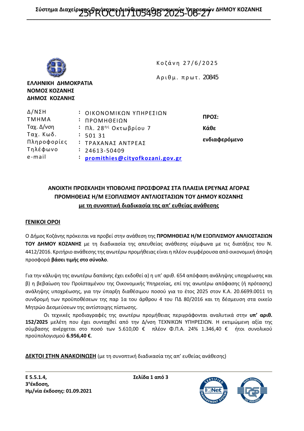 5. Πρόσκληση Υποβολής Προσφοράς ΑΝΤΛΙΟΣΤΑΣΙΑ ΑΔΑΜ.pdf (Version 1.0)