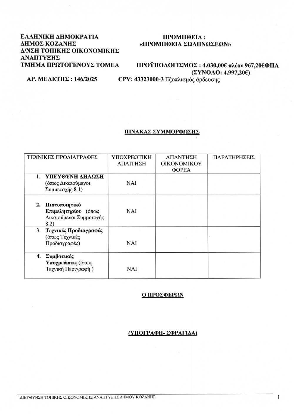 ΠΙΝΑΚΑΣ ΣΥΜΜΟΡΦΩΣΗΣ_σωλήνες.pdf (Έκδοση 1.0)