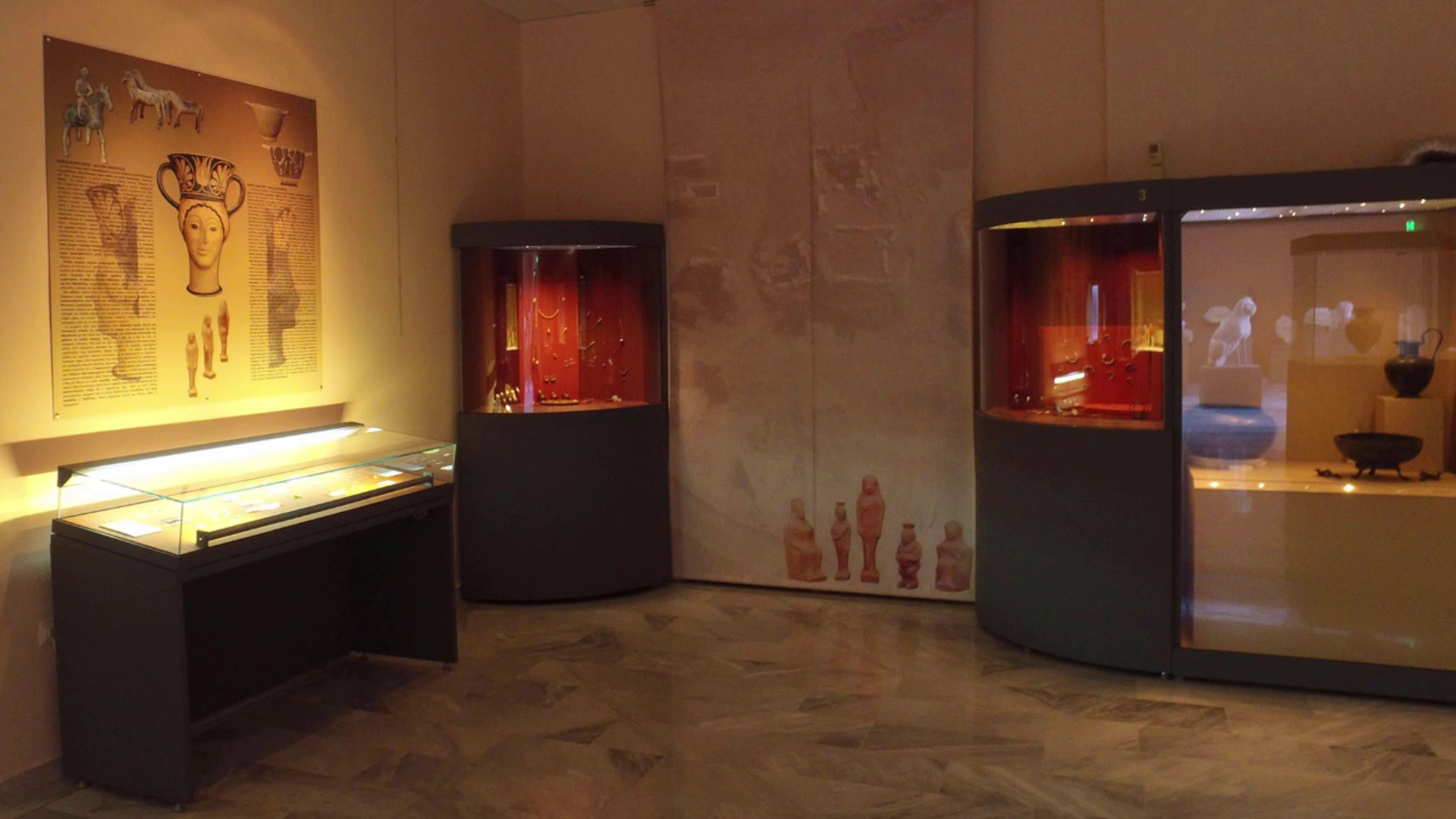 Η λειτουργία του εκθεσιακού χώρου του Μουσείου άρχισε τον Οκτώβριο του 2002 σε δύο αίθουσες, Α και Β έκτασης 153 και 89 τ.μ. αντίστοιχα. Η έκθεση είναι δομημένη χρονικά και θεματικά. Τα χαρακτηριστικά ς έκθεσης, όπως σύντομα αναφέραμε, είναι: