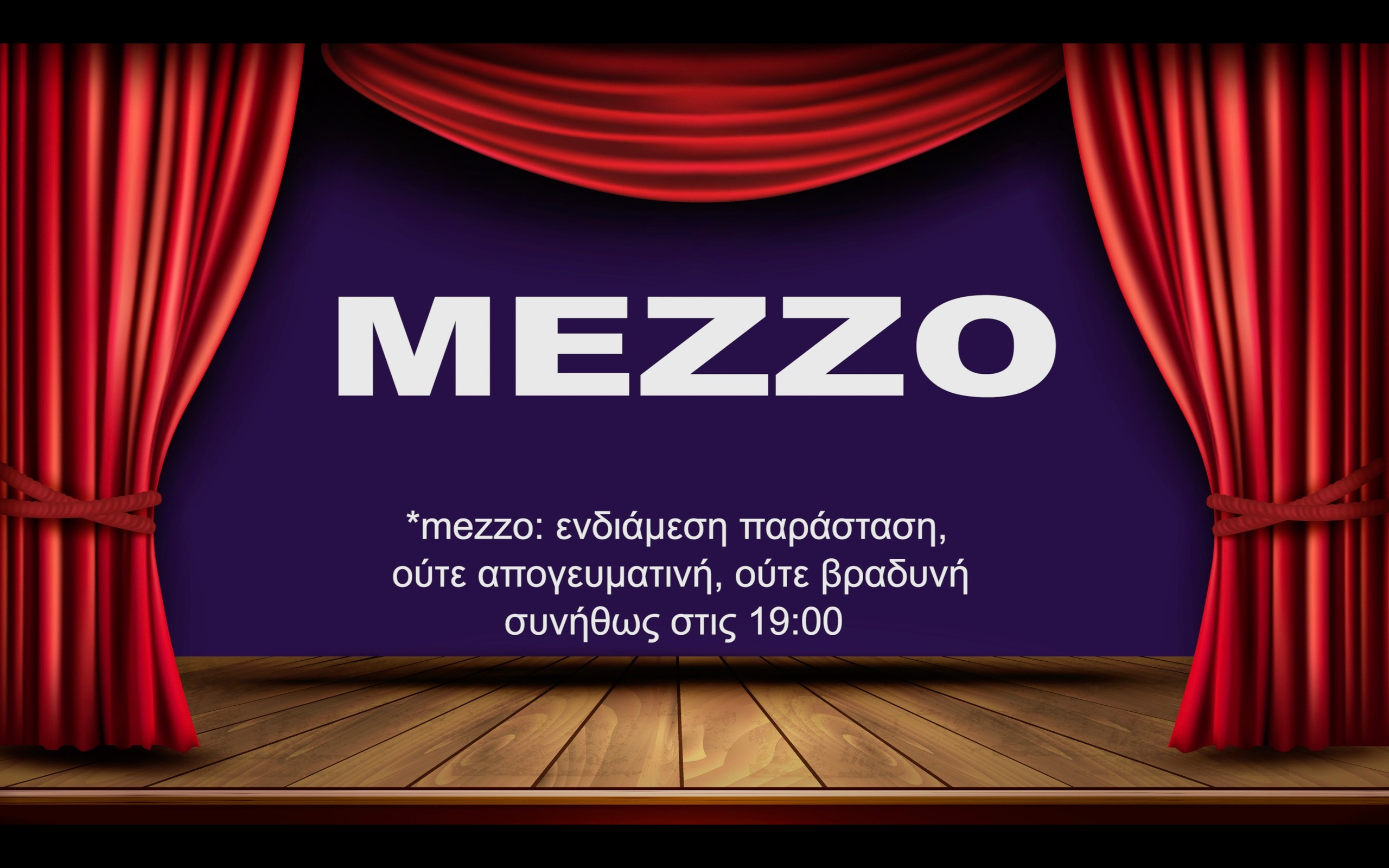 Mezzo είναι η ενδιάμεση παράσταση, ούτε απογευματινή, ούτε βραδινή. Συνήθως γίνεται στις 19:00.