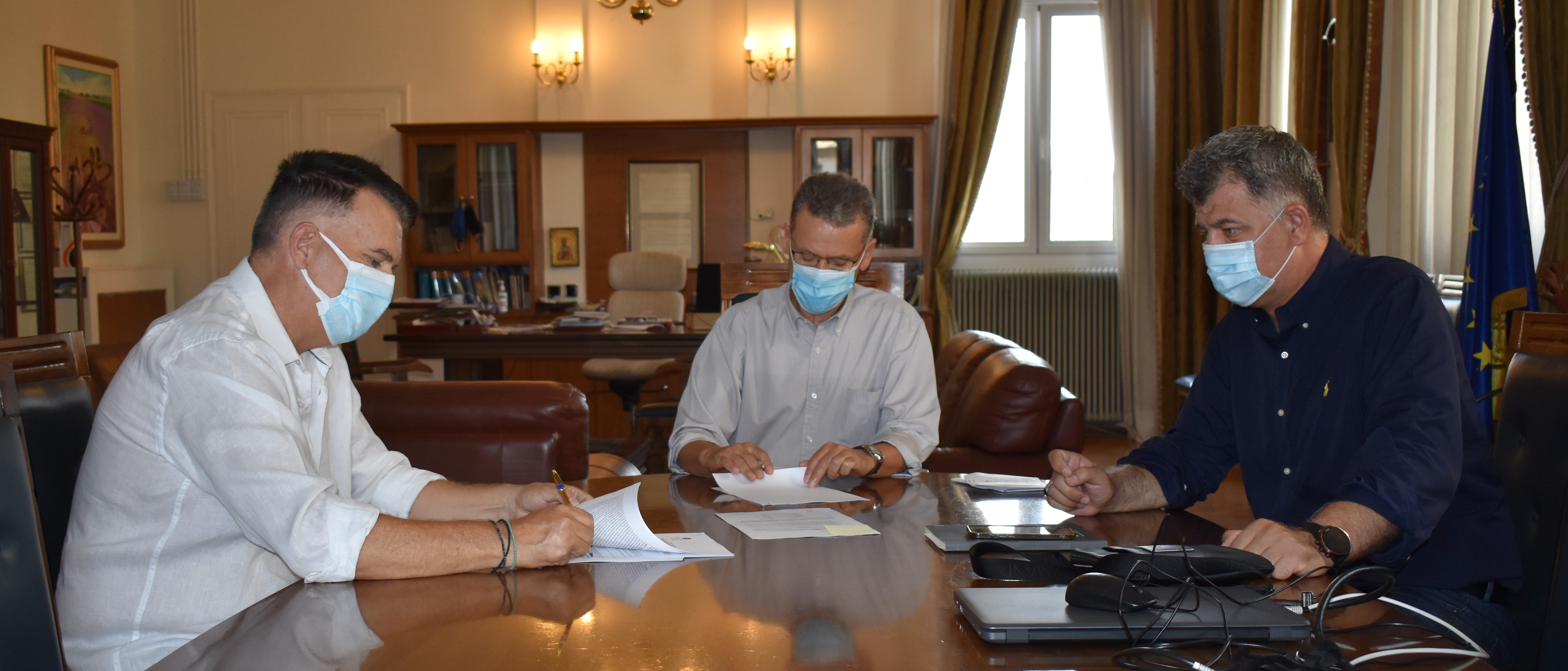 Υπεγράφη η σύμβαση «Πλακόστρωση πεζοδρομίων και διαμόρφωση κοινόχρηστων χώρων οικισμών Δημοτικής Ενότητας Κοζάνης», από το δήμαρχο Κοζάνης Λάζαρο Μαλούτα και τον ανάδοχο του έργου, την Πέμπτη 26 Αυγούστου 2021, στο Δημαρχείο. Το «παρών» έδωσε και ο αντιδήμαρχος Τεχνικών Υπηρεσιών Βαγγέλης Σημανδράκος.