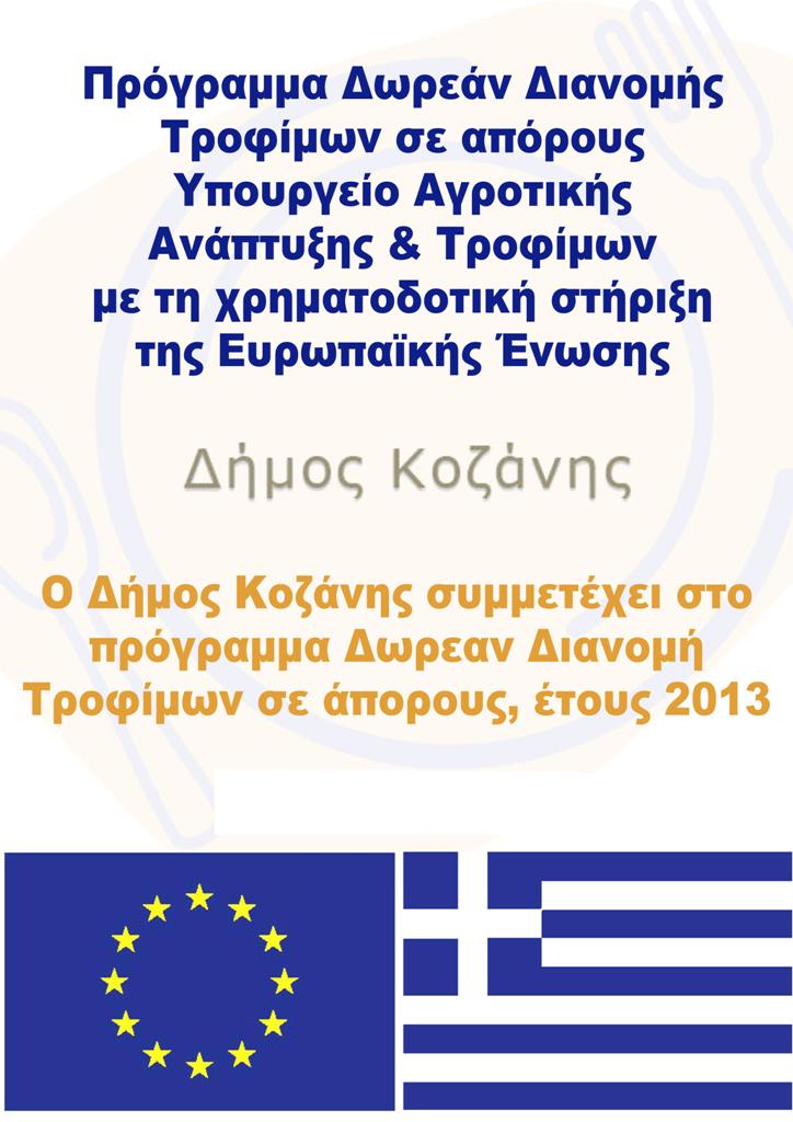 Δήμος Κοζάνης: Δωρεάν Διανομή Τροφίμων της Ευρωπαϊκής Ένωσης
