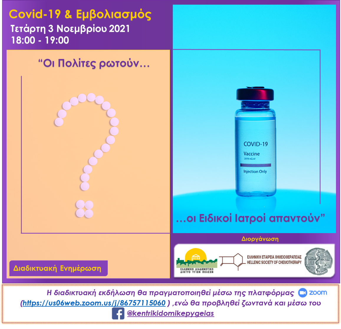 Στο πλαίσιο της καμπάνιας, θα πραγματοποιηθεί διαδικτυακή ημερίδα, με στόχο την ορθή ενημέρωση για τον εμβολιασμό έναντι της πανδημίας. Προσεκτικά επιλεγμένες ερωτήσεις θα απαντηθούν από ειδικούς ιατρούς, οι οποίοι καλούνται να καλύψουν απορίες των πολιτών σχετικά με το θέμα.