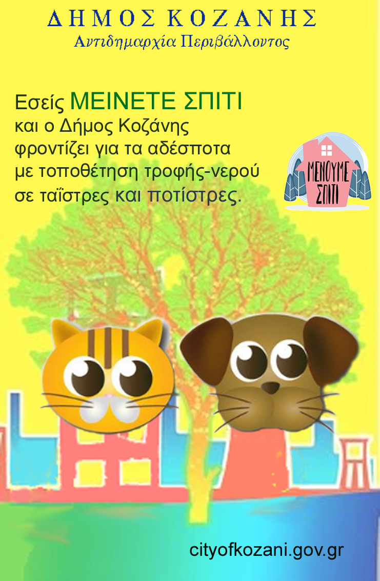 ΜΕΝΟΥΜΕ ΣΠΙΤΙ και ο Δήμος Κοζάνης φροντίζει για τα αδέσποτα.