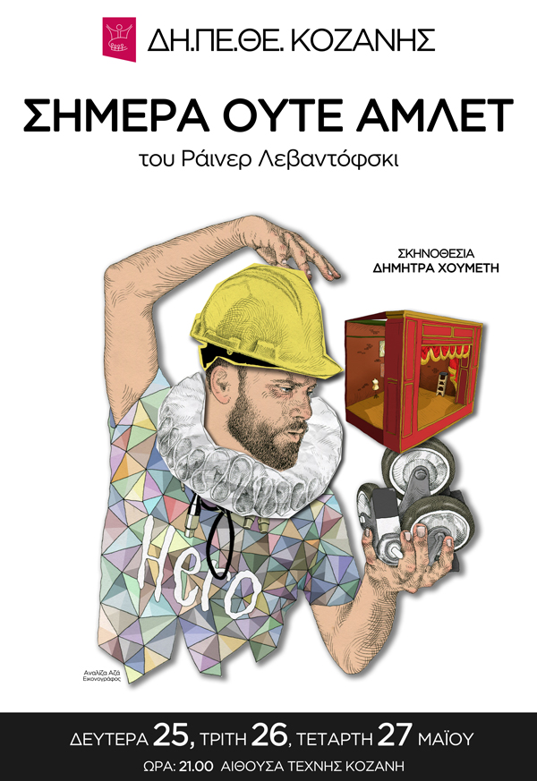 Η παράσταση Σήμερα ούτε Άμλετ, από το ΔΗ.ΠΕ.ΘΕ. Κοζάνης παρουσιάζεται τη Δευτέρα 25, Τρίτη 26 και Τετάρτη 27 Μαΐου στην Αίθουσα Τέχνης του ΔΗ.ΠΕ.ΘΕ. Κοζάνης στο πλαίσιο του φεστιβάλ “Μέρες Θεάτρου”.
