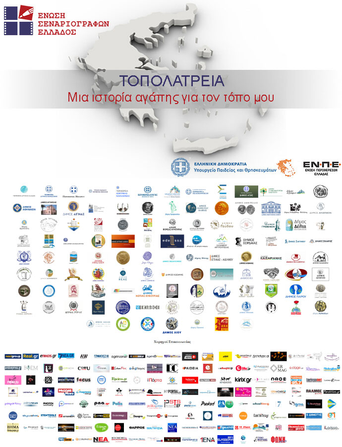 Εάν πιστεύετε ότι μπορείτε με τρεις φωτογραφίες, ακόμα και του κινητού σας, να πείσετε μια επιτροπή δημιουργών ότι η δική σας αγάπη προβάλλει πειστικότερα, καλλίτερα και εντυπωσιακότερα τον τόπο σας τότε έχετε πολλές πιθανότητες να είσθε εκείνος ή εκείνη που θα κληθεί να δημιουργήσει, δηλαδή να γράψει το πλήρες σενάριο και να σκηνοθετήσει ένα promo (διαφημιστικό 3΄λεπτης διάρκειας) σε παραγωγή της Ένωσης Σεναριογράφων Ελλάδος, με τίτλο ΤΟΠΟΛΑΤΡΕΙΑ ώστε να αναδειχθεί η ιδιαιτερότητα του τόπου και η μεγάλη αγάπη για αυτόν.