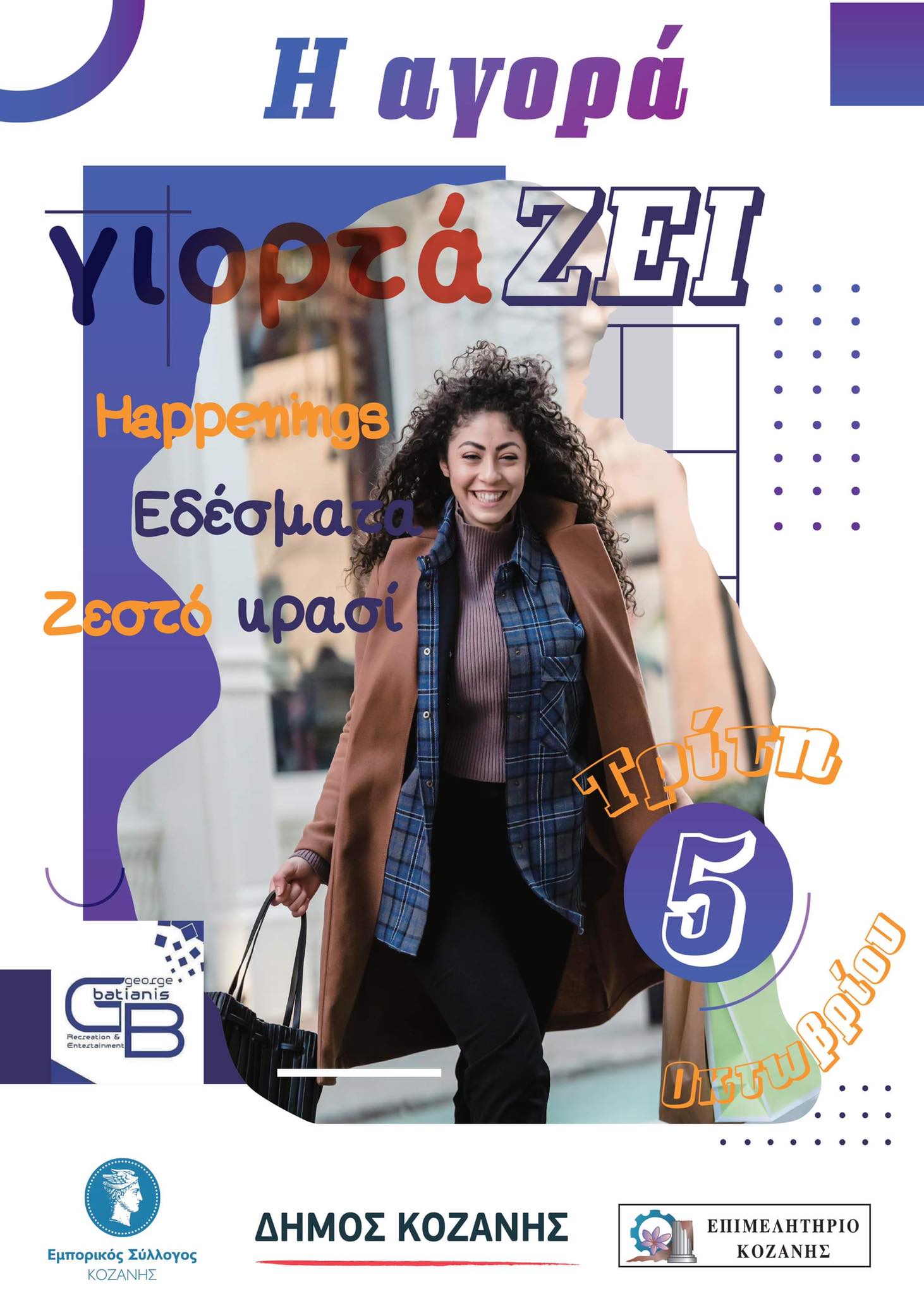 "Η Κοζάνη γιορτάΖΕΙ" τιτλοφορήθηκε η πρωτοβουλία του Εμπορικού Συλλόγου Κοζάνης, που υποστηρίχθηκε από το Δήμο Κοζάνης και το Επιμελητήριο Κοζάνης, με στόχο την ενίσχυση της αγοραστικής κίνησης.