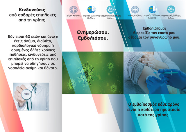 Σαράντα χιλιάδες νοικοκυριά ενημερώθηκαν για τον αντιγριπικό εμβολιασμό, στο πλαίσιο εκστρατείας ενημέρωσης που πραγματοποίησε ο Δήμος Κοζάνης. Με βασικό γνώμονα την ευαισθητοποίηση  των πολιτών, διανεμήθηκαν μέσω των λογαριασμών της ΔΕΥΑΚ φυλλάδια με σύνθημα «Ενημερώσου. Εμβολιάσου».