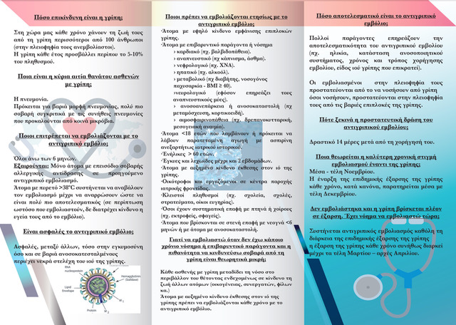 Τα ενημερωτικά φυλλάδια περιελάμβαναν πληροφορίες για την αποτελεσματικότητα του αντιγριπικού εμβολίου, την επικινδυνότητα της γρίπης, καθώς και πληροφορίες για το ποιοι πρέπει να εμβολιάζονται.