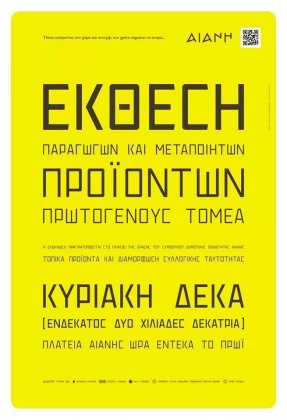 Έκθεση Παραγωγών και Μεταποιητών Προϊόντων Πρωτογενούς Τομέα,την Κυριακή 10/11 ατην Αιανή