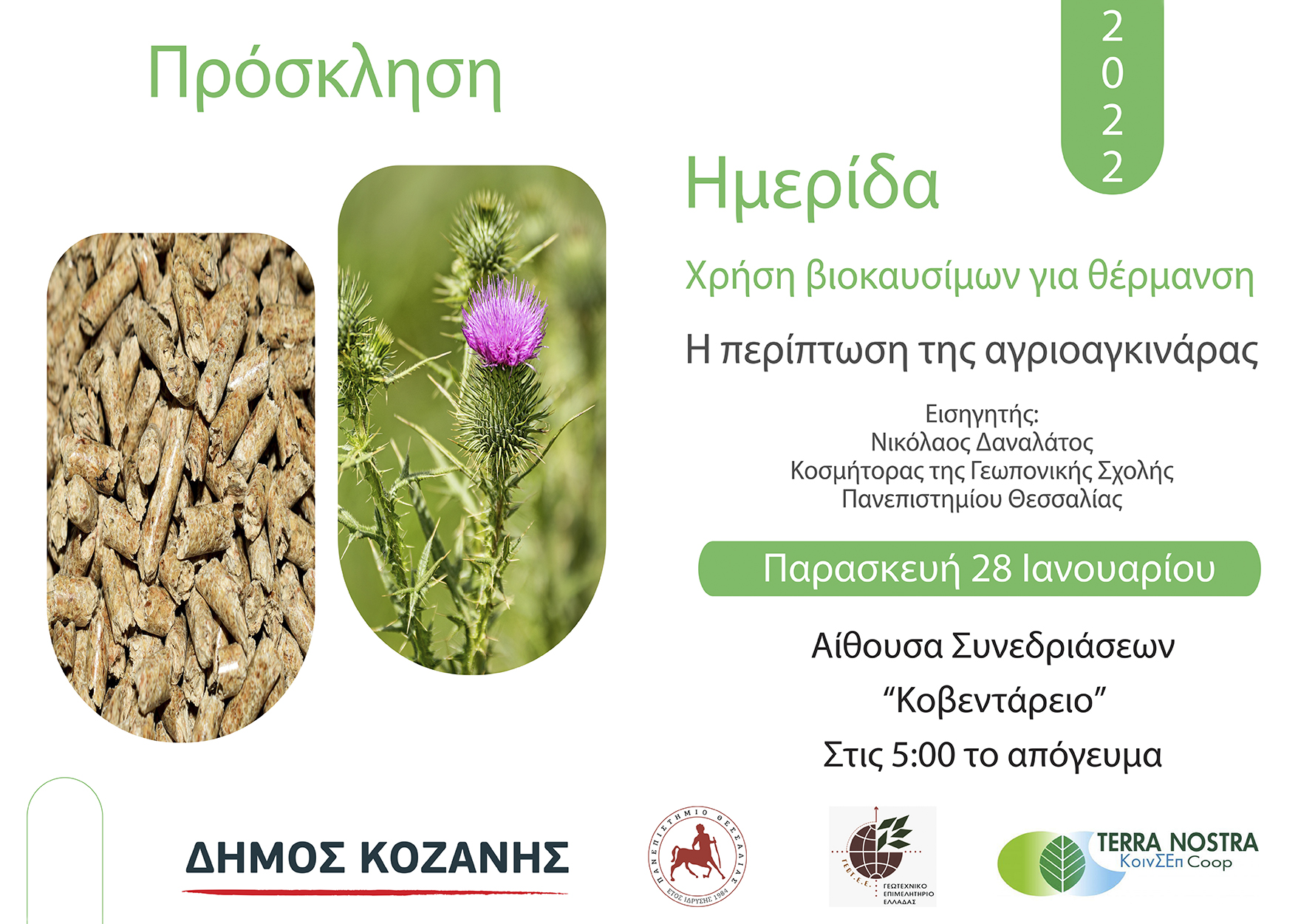 Σας προσκαλούμε σε ημερίδα με θέμα: «Χρήση βιοκαυσίμων για θέρμανση – Η περίπτωση της αγριογκινάρας».