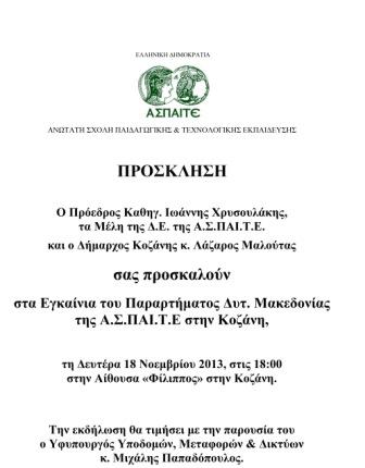 Εγκαίνια παραρτήματος Α.Σ.ΠΑΙ.ΤΕ. Κοζάνης