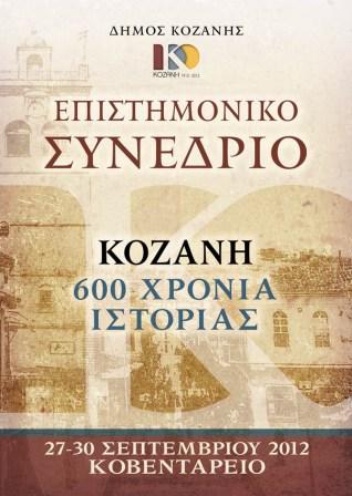 Ο Δήμος Κοζάνης θέλοντας να συμβάλλει στην έρευνα και την προβολή της ιστορίας της Κοζάνης, διοργανώνει το Επιστημονικό Συνέδριο «Κοζάνη 600 χρόνια ιστορίας» Γένεση και Ανάπτυξη μιας Μακεδονικής Μητρόπολης, 27-30 Σεπτεμβρίου 2012, στο Κοβεντάρειο.