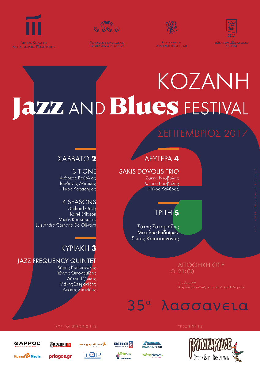 Ένα σπουδαίο μουσικό γεγονός ξεκινά το Σάββατο στην Κοζάνη! Στο Jazz and Blues Festival, εξαιρετικοί μουσικοί θα μας ταξιδέψουν σε μοναδικά μελωδικά μονοπάτια, με συναυλίες από το Σάββατο 2 Σεπτεμβρίου έως την Τρίτη 5 Σεπτεμβρίου στην Αποθήκη του Σιδηροδρομικού Σταθμού. Το φεστιβάλ διοργανώνεται στο πλαίσιο των 35ων Λασσανείων.