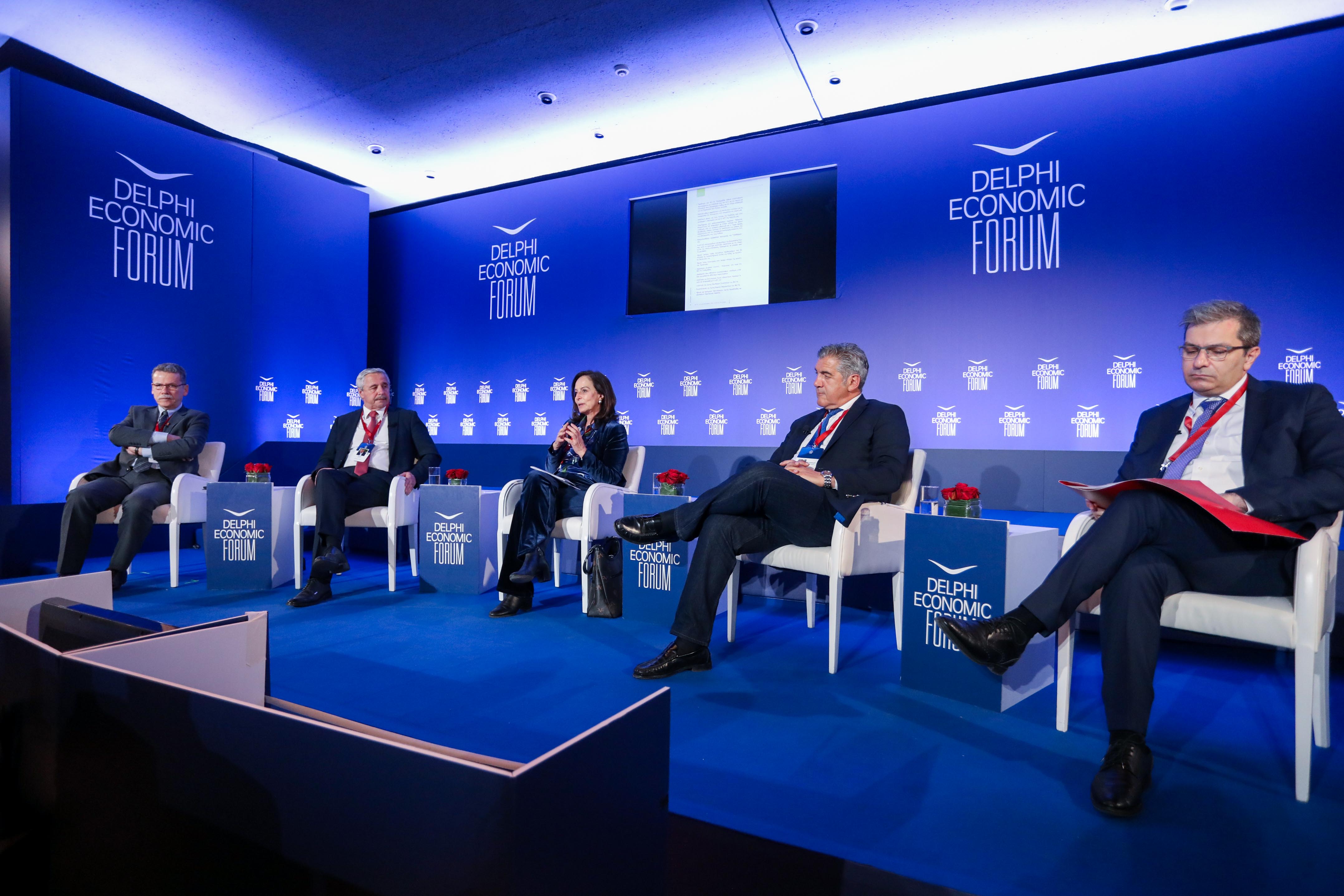 Οι προκλήσεις και οι προοπτικές της απολιγνιτοποίησης και της δίκαιης μετάβασης στη νέα εποχή αναπτύχθηκαν στο πλαίσιο της συζήτησης στο Διεθνές Οικονομικό Φόρουμ των Δελφών, το πρωί του Σαββάτου 9 Απριλίου 2022, στην Αίθουσα Κωνσταντίνος Καραμανλής.