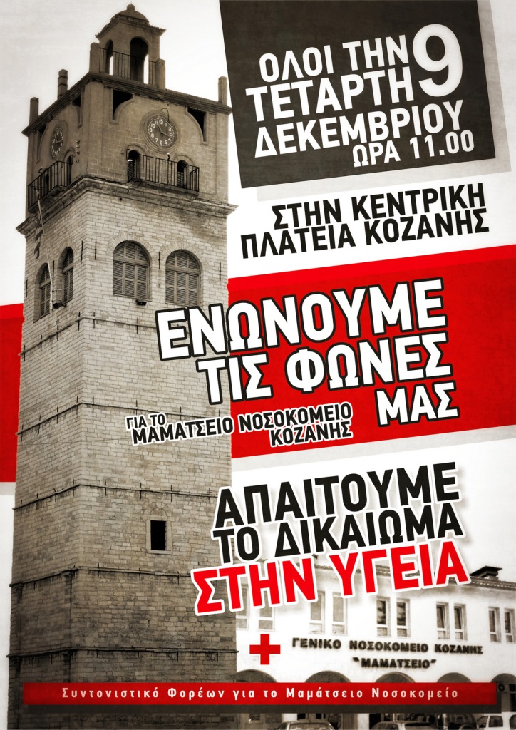Ο Δήμος Κοζάνης συμμετέχει στο Πανκοζανίτικο συλλαλητήριο για την κατάσταση στο χώρο της υγείας, την Τετάρτη 9 Δεκεμβρίου και ώρα 11π.μ.