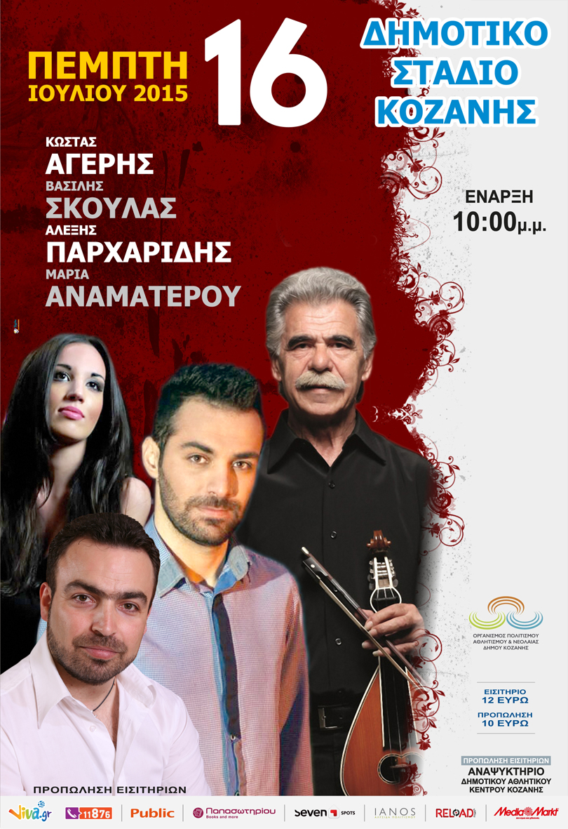 Ο Κοζανίτης νικητής του «THE VOICE» Κώστας ΑΓΕΡΗΣ, την Πέμπτη 16 Ιουλίου στις 10 το βράδυ, στο Δημοτικό Στάδιο Κοζάνης στο πλαίσιο των ΛΑΣΣΑΝΕΙΩΝ 2015.