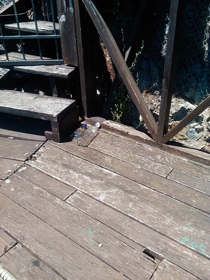Η ανοησία όμως όσων πιστεύουν ότι είναι «μάγκες» δεν σταματάει ακόμα κι όταν είναι καθαρά και τακτοποιημένα. Φροντίζουν να επαναφέρουν το χάος και την φθορά στο έπακρο. Έτσι, μετά λύπης μας μετά από αυτοψία Τεχνικής Υπηρεσίας και ΟΑΠΝ διαπιστώσαμε ότι ανήμερα της έναρξης των φετινών εκδηλώσεων (Τετάρτη 24 Ιουνίου) το θέατρο ήταν σε άθλια κατάσταση με ζημιές που έγιναν το προηγούμενο βράδυ. Οι φωτογραφίες αποδεικνύουν ότι κάποιοι δεν θα γίνουν ποτέ άνθρωποι και δεν θα σκεφτούν ποτέ ότι ο κόπος των εργαζόμενων και τα χρήματα των δημοτών που ξοδεύτηκαν ακυρώνονται με τις δικές τους ενέργειες.